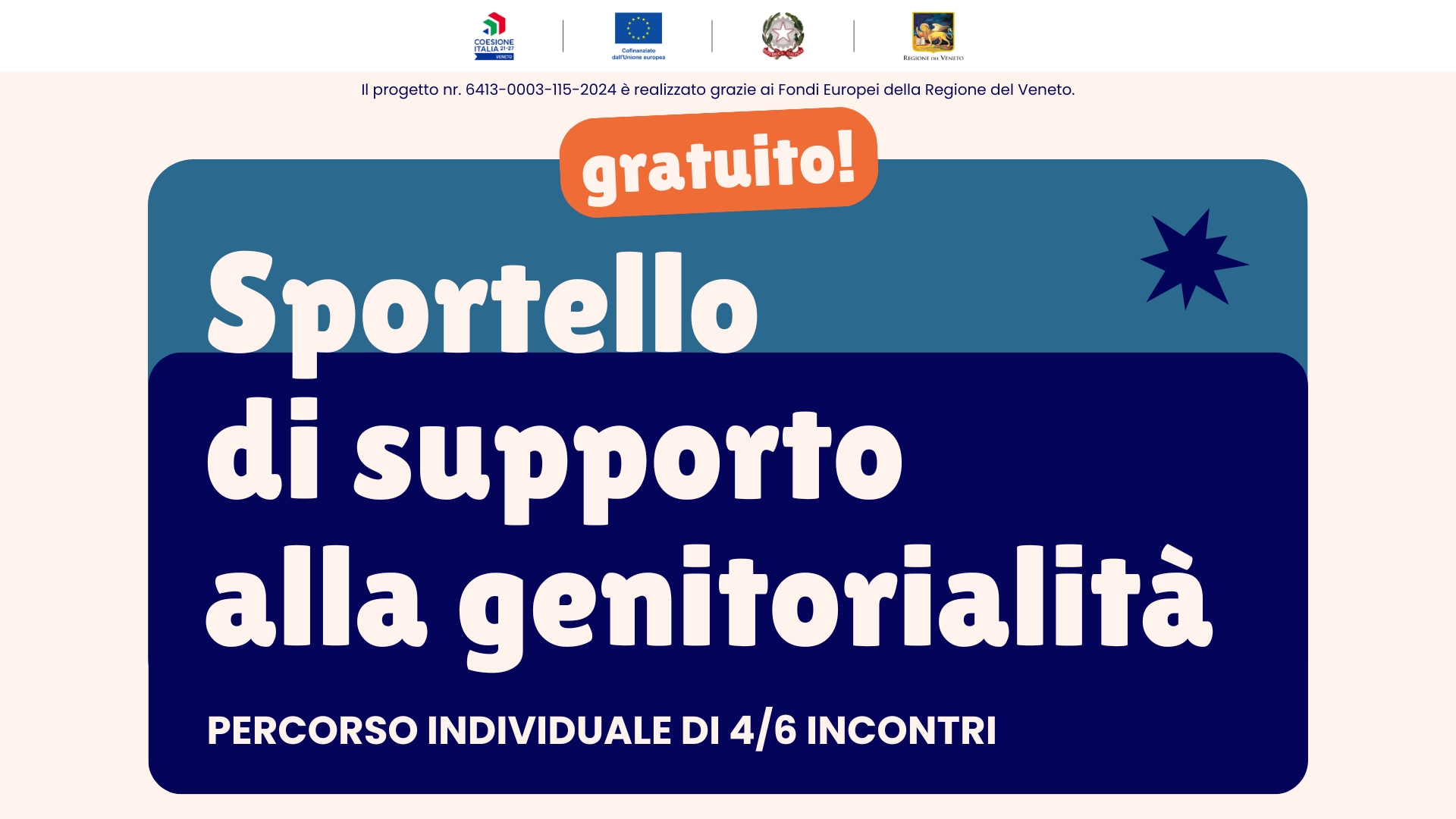 Lo sportello, dedicato ai genitori, offre ascolto, sostegno e strumenti pratici per affrontare le sfide legate alla crescita di figli e figlie nella fascia 0-3 delineando insieme un ruolo genitoriale consapevole e responsivo e promuovendo il benessere familiare e le competenze relazionali.
